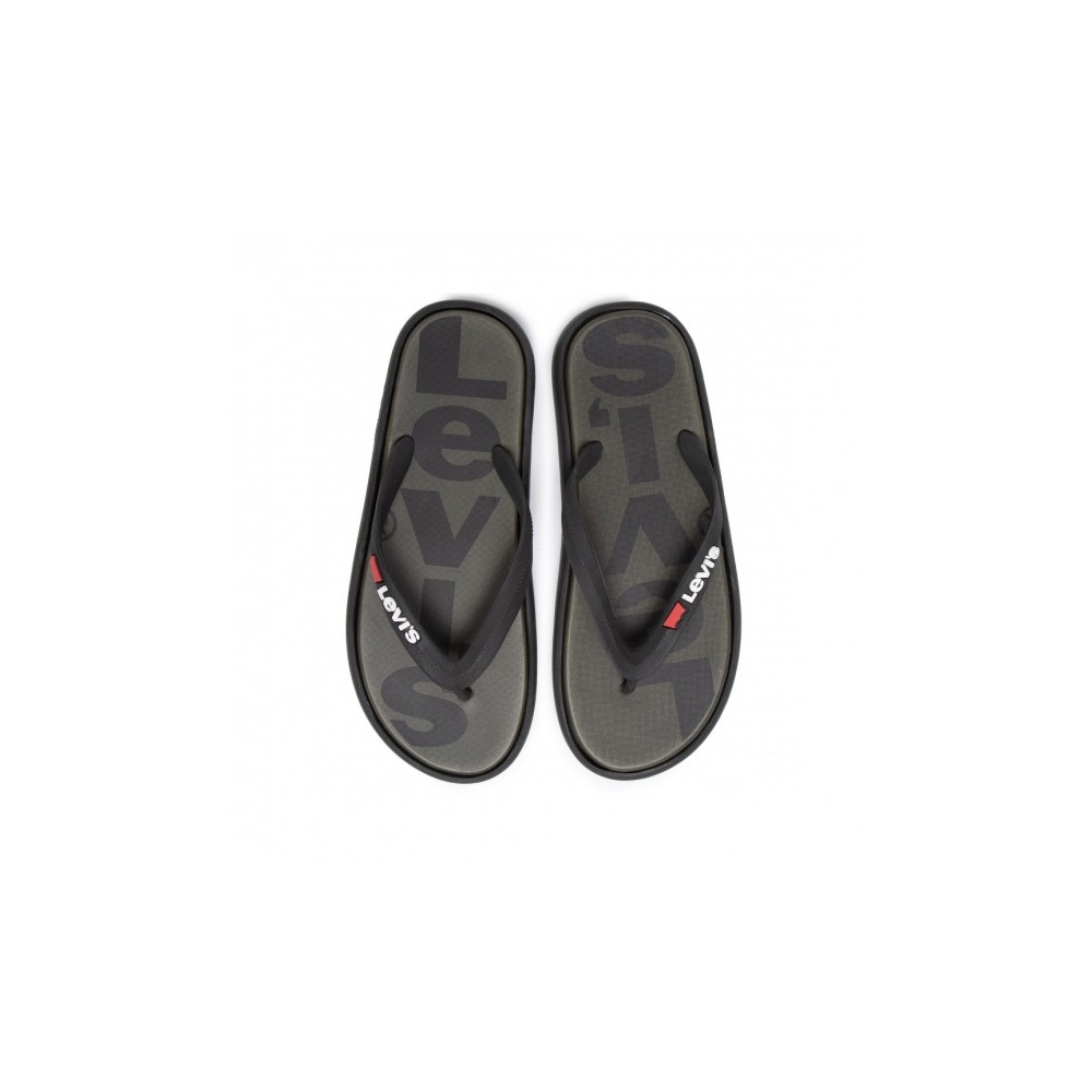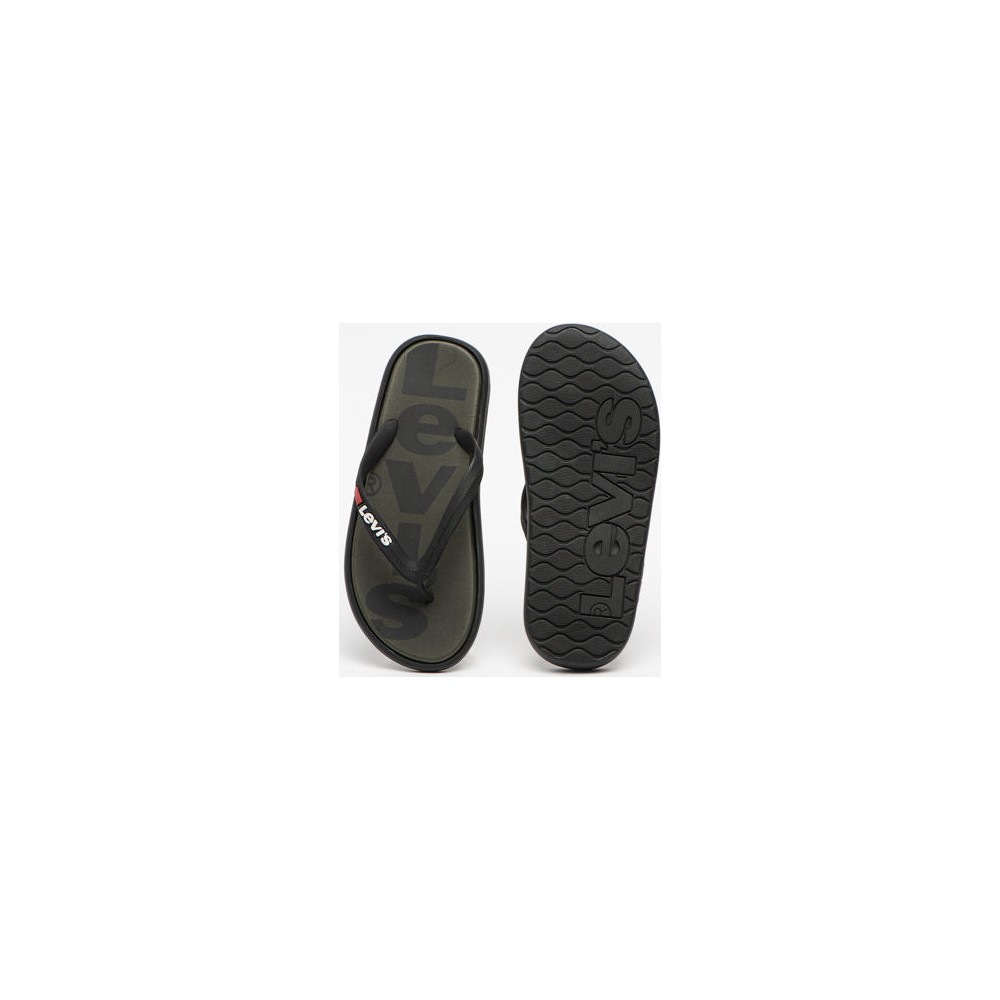Levis pánské pantofle - žabky - khaki barva kombinovaná s černou, logo Levis.