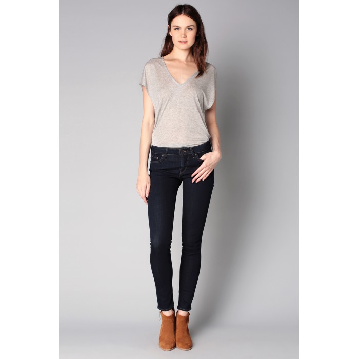 Dámské úzké džíny Levi Strauss s těsnými nohavicemi a nižším moderním sedem, který je velmi trendy a zároveň pohodlný. V těchto kalhotách se budete cítit jako opravdová žena, střih SKINNY koresponduje s Vašimi křivkami Vám zaručí jednak pohodlí, jednak podtrhne Vaší postavu
