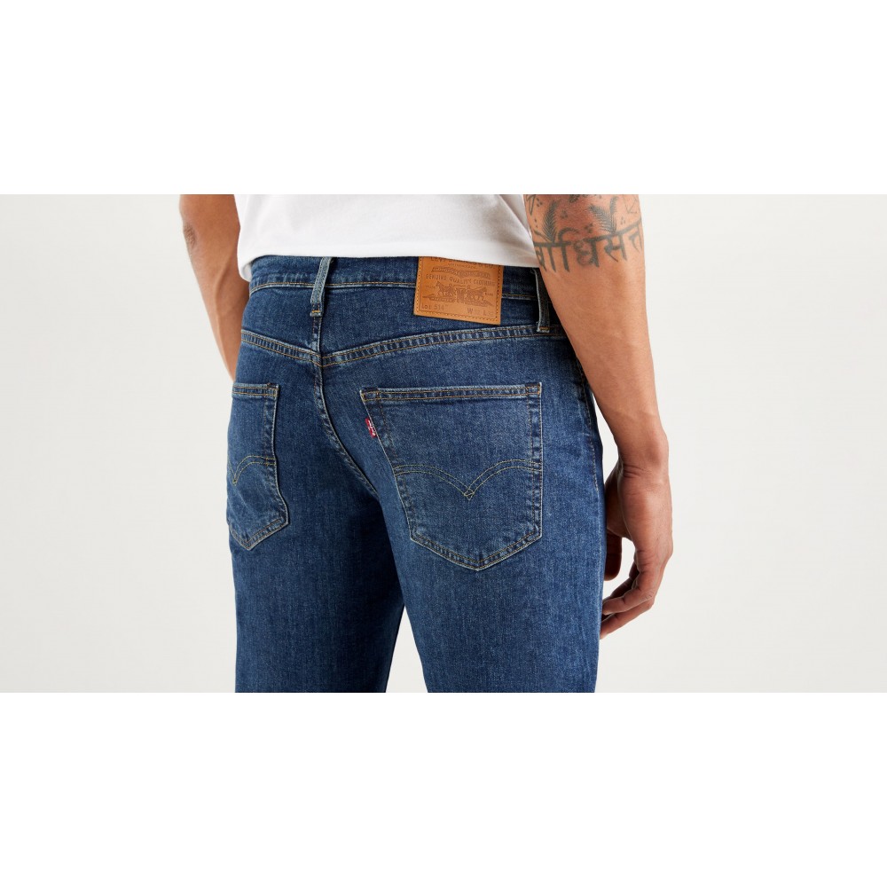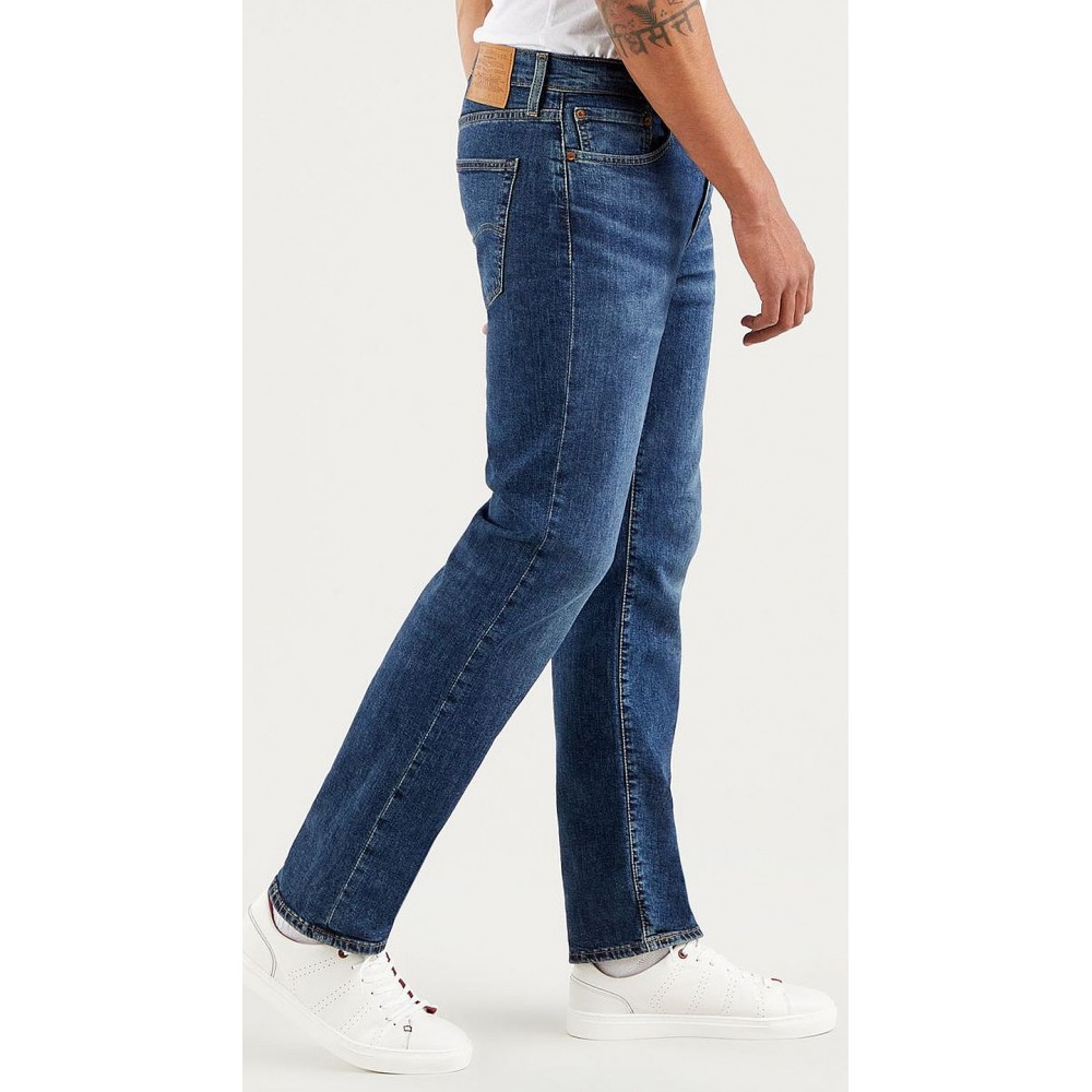 Pánské jeans Levi Strauss řady 514 jsou kalhoty s širšími nohavicemi přes stehna a s nižším pasem. Střih nohavic směrem dolů je rovný.