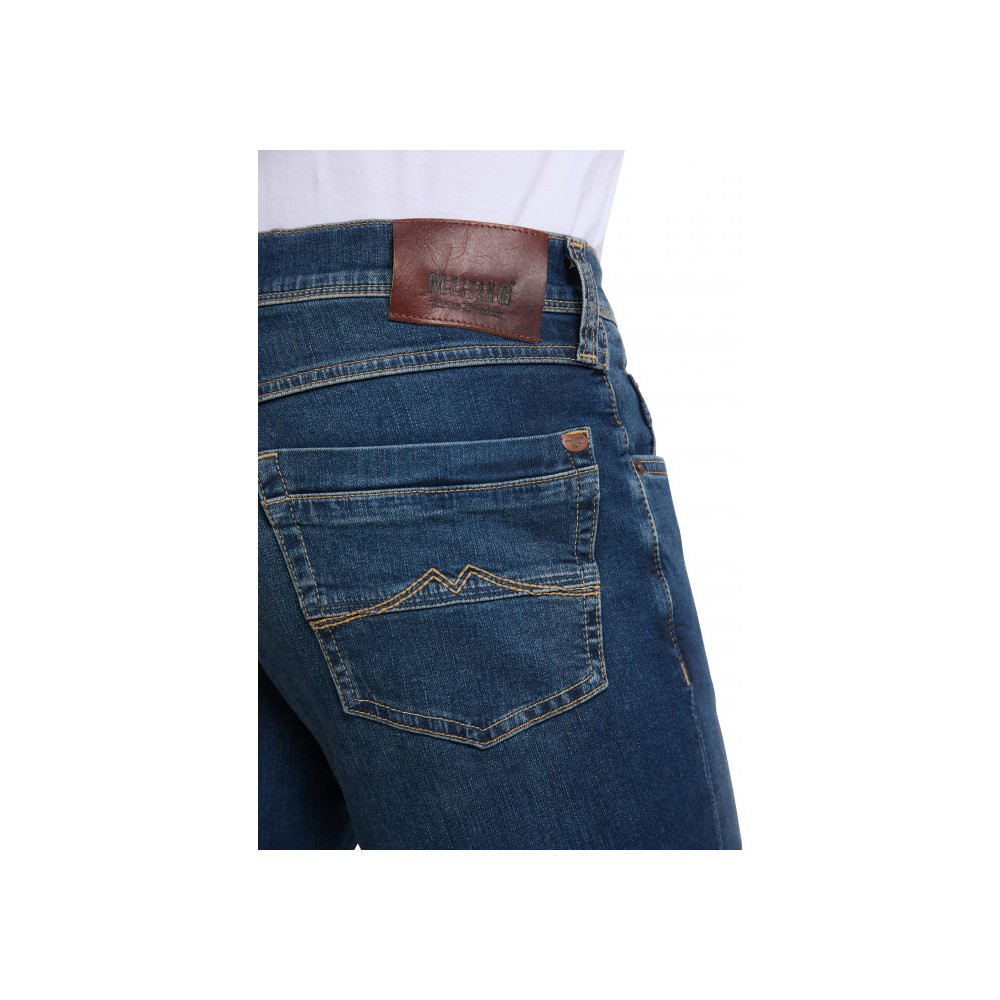 Mustang jeans Washington, džíny s širší nohavicí přes stehna i přes lýtko, nejsou to ale typické straight, směrem ke kotníkům se mírně zúžují.