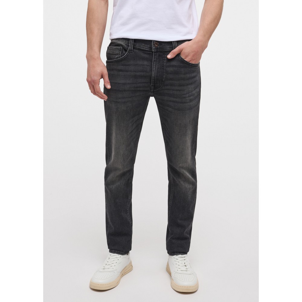 Pánské džíny značky Mustang ve střihu SLIM. Kalhoty s mírně nižší výškou sedu a užším střihem nohavic. Šedá barva s prvky oprání.