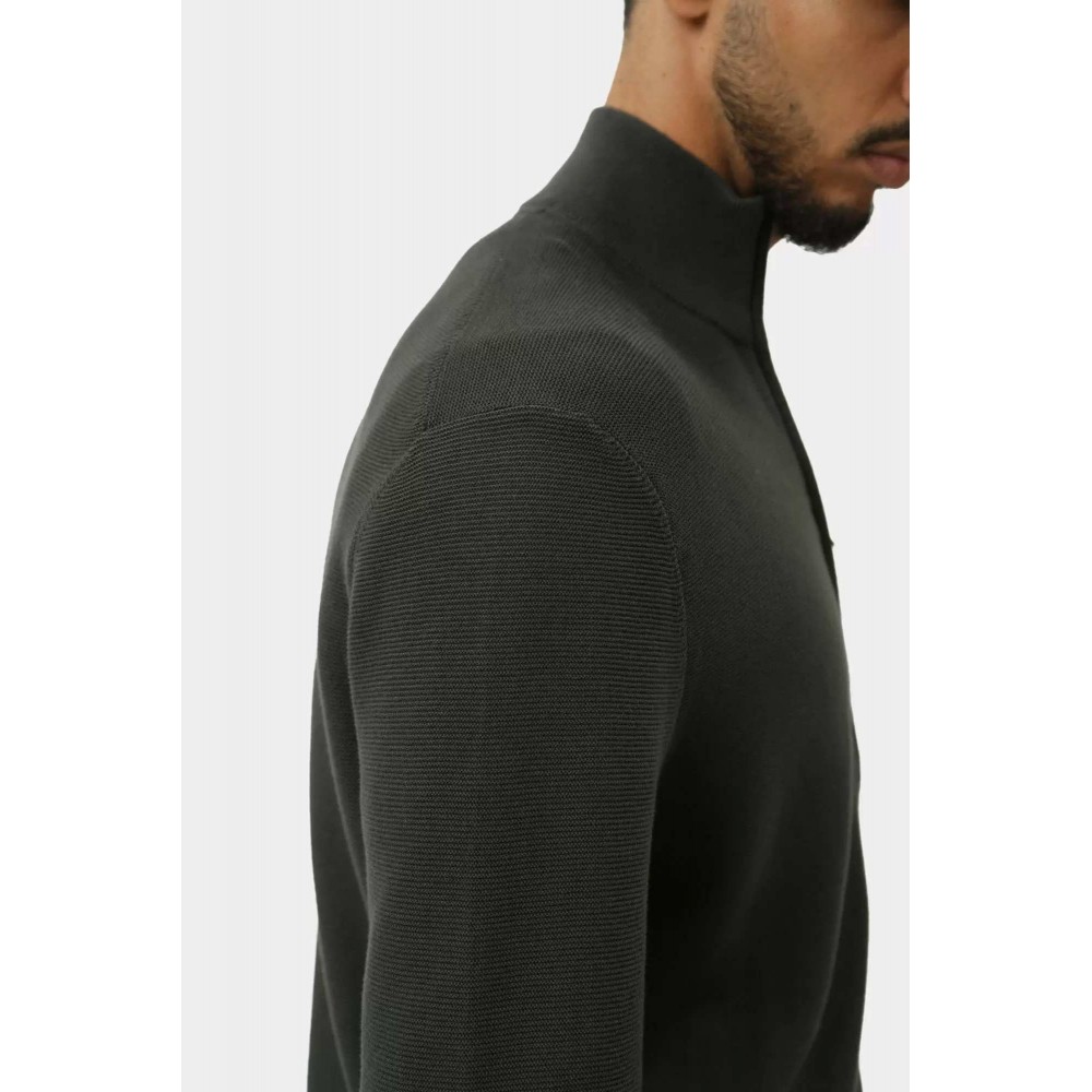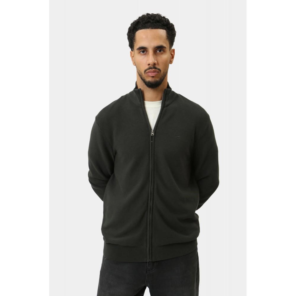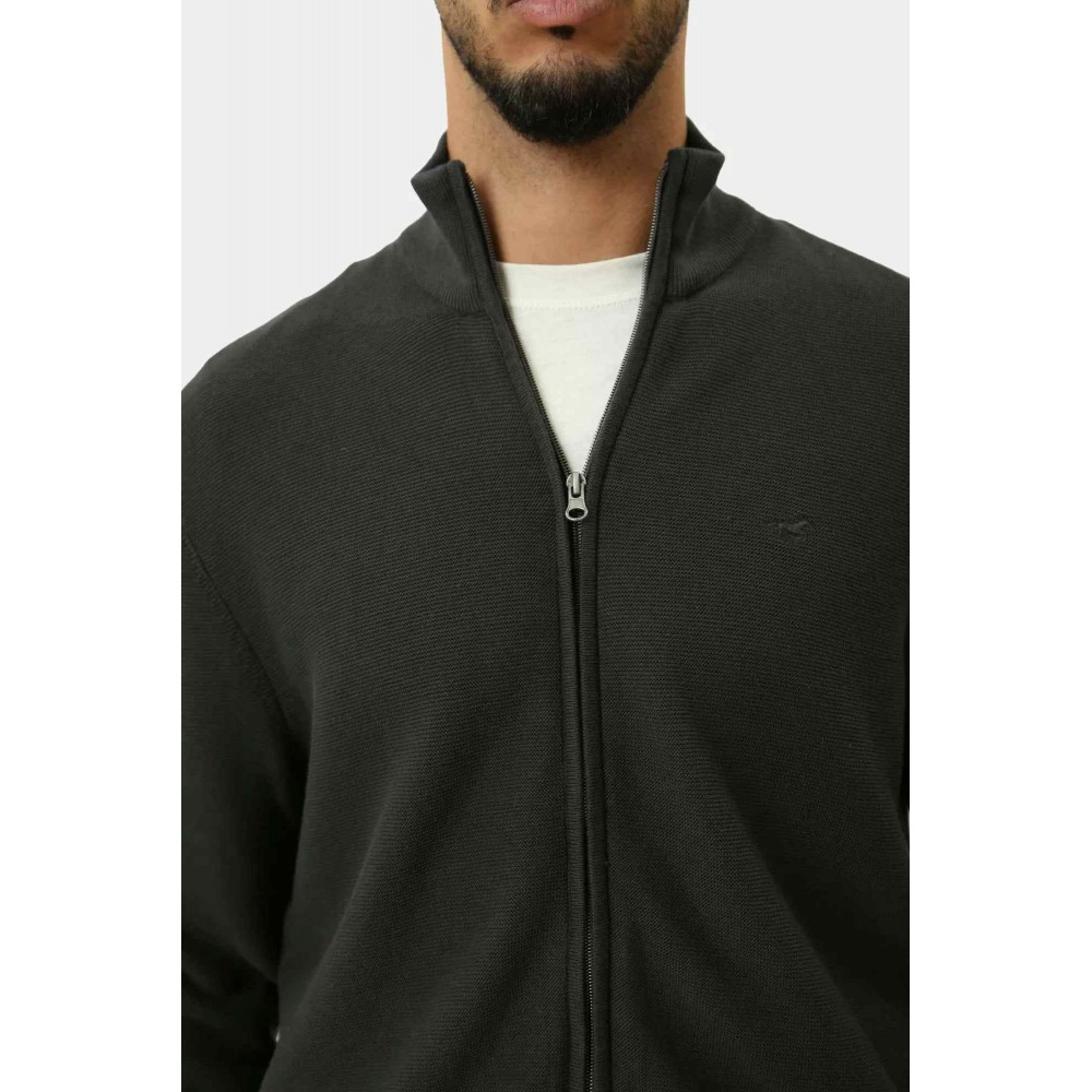 Pánský pletený svetr se stojáčkem, zapínáním na zip a decetním vyšívaným logem na hrudi.
