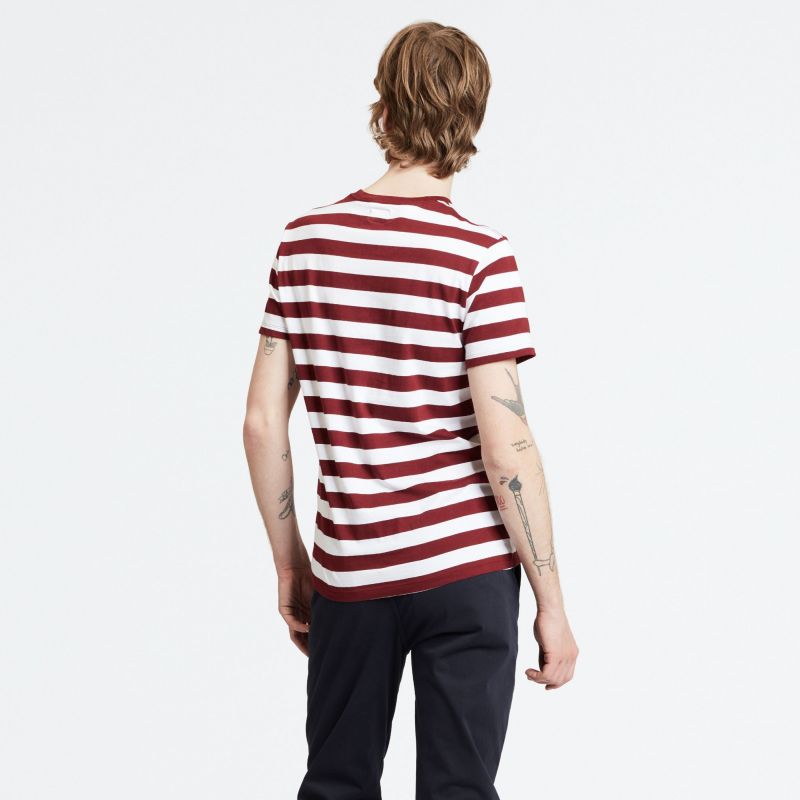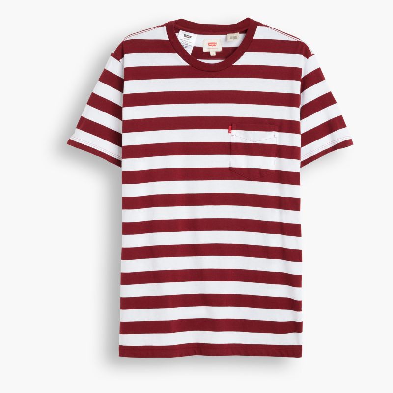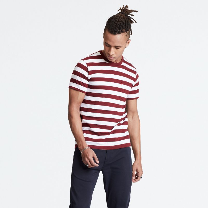 Pánské bavlněné tričko Levis. Pruhované, červonobílé tričko s kapsičkou.
