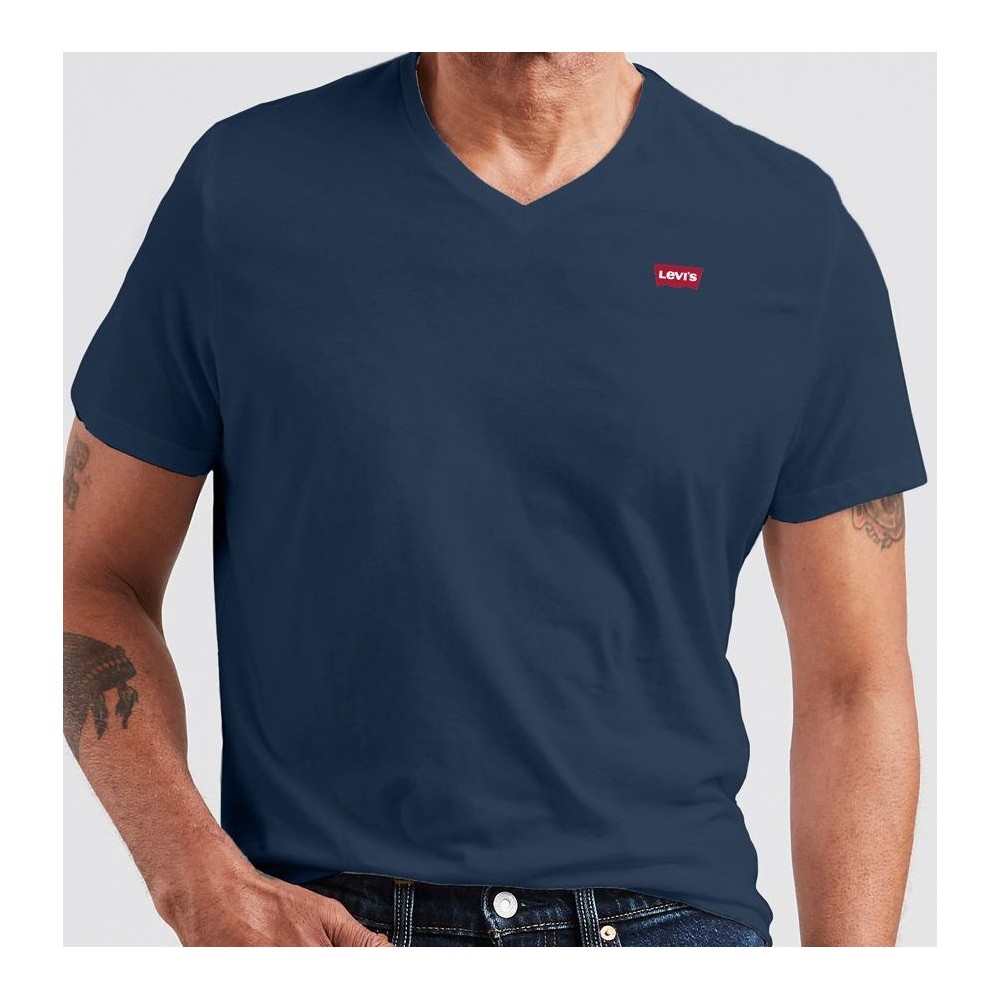 Pánské tričko Levi Strauss s výstřihem do V, tmavě modrá barva, malé červené logo Levis.