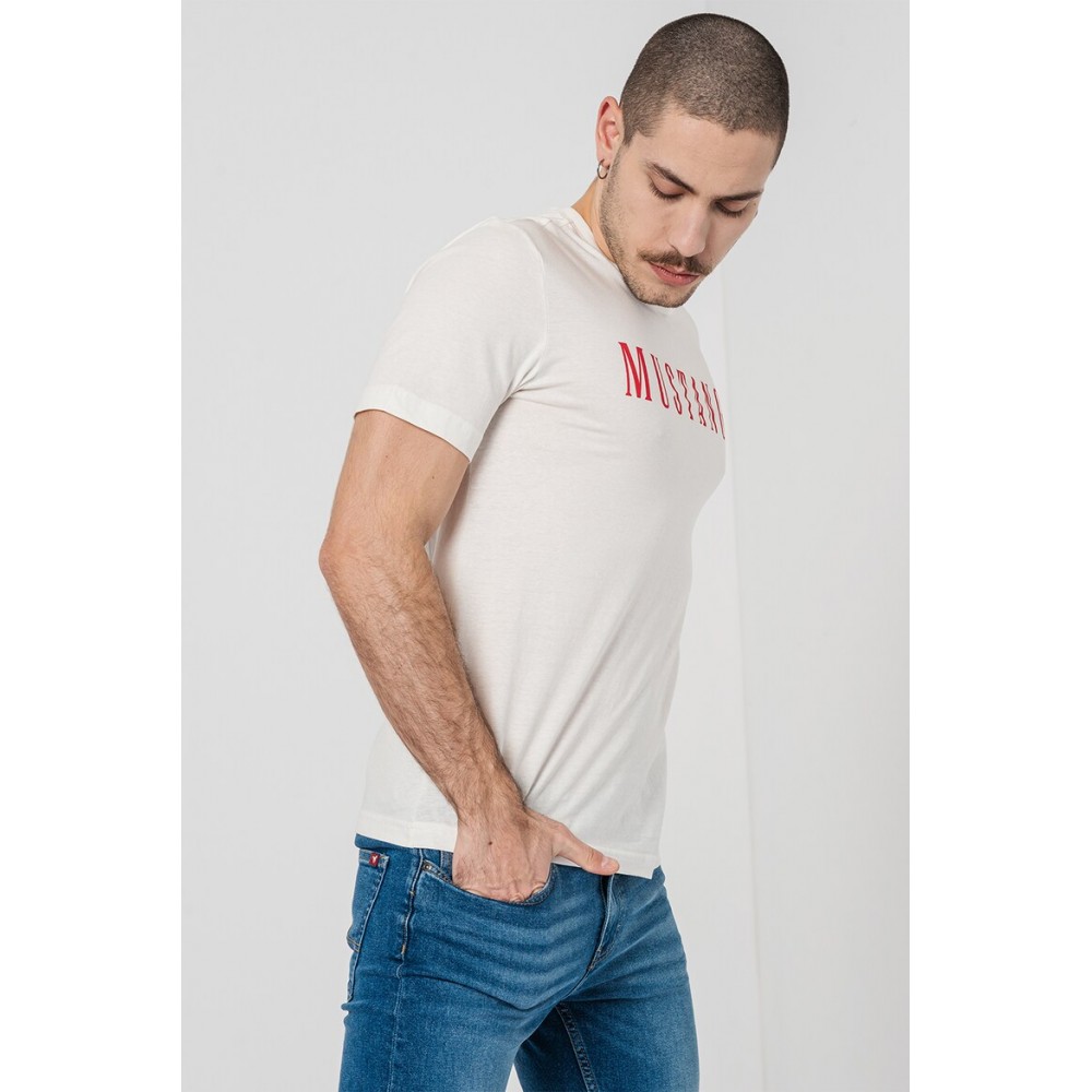 Jednoduché vkusné bavlněné tričko s tištěným nápisem na hrudi. Německá módní ikona Mustang.